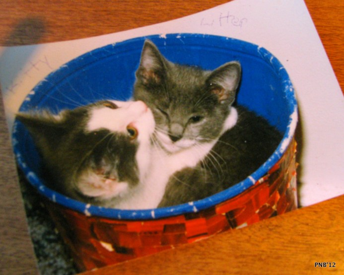 I was married for 9 years from August 4th 1990 to November 19, 1999. On February 14 1991 I choose from a litter of 4 kittens the little gray female one in the middle of the other 3 little white & gray boys. They were 1 hour old. When they were 8 weeks somehow my friend managed to convince me to take the 2 boys with me as well. I should have known better. So I went from having 1 cat, Maxie, to 4 of the fluffy feline beasty’s.