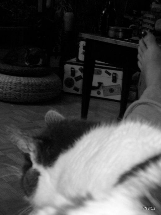 Now at some point in those first few months Shoe Monster developed Liver Disease – he was 10 yrs old. My Mom was alive then so she donated $3000 or so to the save my kitty cat fund, and 3 months of 3x a day feedings through a tube into his stomach and a bag of saline/day later….and I was a basket case, but he was healthy and hail. You really haven’t lived until you’ve had to poke a sick cat with a hollow needle then try to get him to stay still for 20 minutes. So I used the palm under his belly, high in the air technique. Worked like a charm, wiggle all ya want….as I’m sitting on the bed with this sick cat up above my head….I must have looked like some demented Statue of Cat Liberty or something.