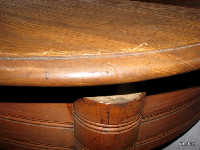 Just this last spring when all four of us (Tim & I and Jess & the new hubby) were heading to their reception, well wasn’t there an OAK table sitting at the side of the road with a sign reading “FREE” taped to the front.