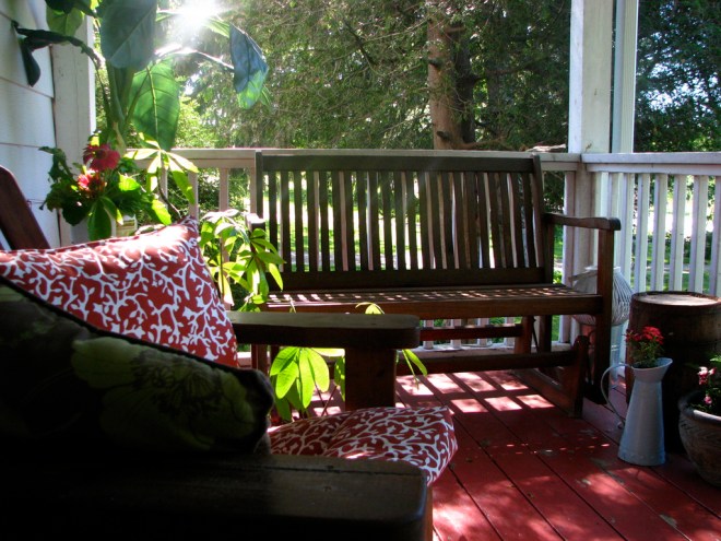 This porch has shaded us, comforted us, and gave us a stage from which to view the river running past. It has provided shelter from the rain, and a place to get away to, to escape to.