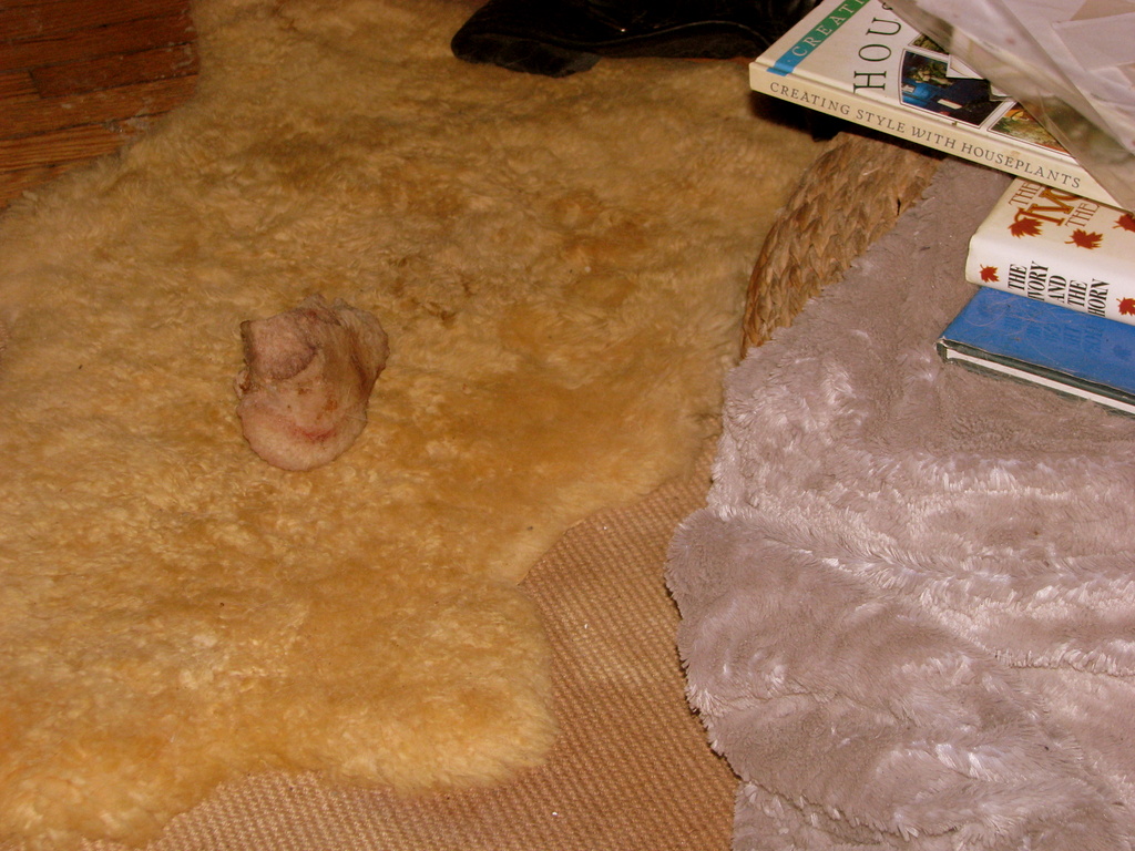Now that she’s inside, she has taken the corner of the blanket, and placed it OVER the bone here beside me. It is NOT staying there. This dog is obsessed with this bone. She wants it for later, but she doesn’t want anyone to take if from her. I never take her bones though, so it’s not me she’s worried about. She’s concerned that, oh, I don’t know, some random dog is going to wander in off the sidewalk and steal her bone from her.