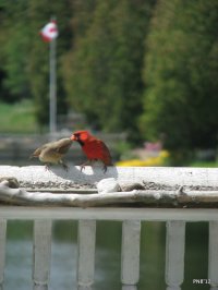 The last year of Tim’s life, and that last year I spent at the cottage, I watched the Cardinals in their mating dance. Then watched in awe as the male brought their young in for their first feast at our feeding deck. Until that year I had not known that it was the male who feed the fledglings. That last year, as Tim slowly slipped away from this life, I saw baby Cardinals, Robins, Goldfinchs and various sparrows. It was as if the spirits were talking – and reminding me of the continuity of life.