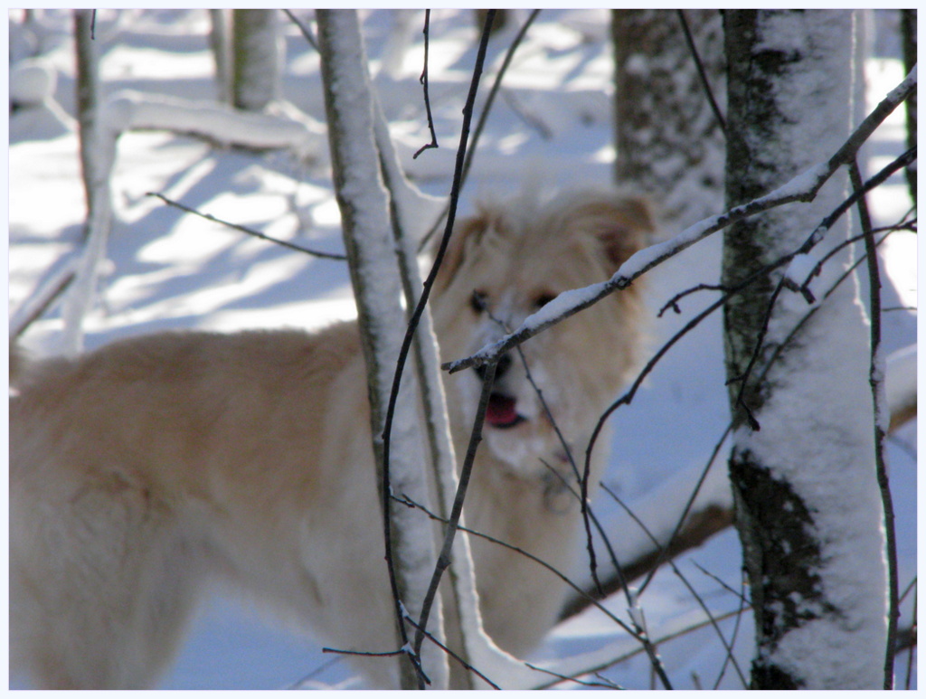 entangled in bits of an old wooden fence