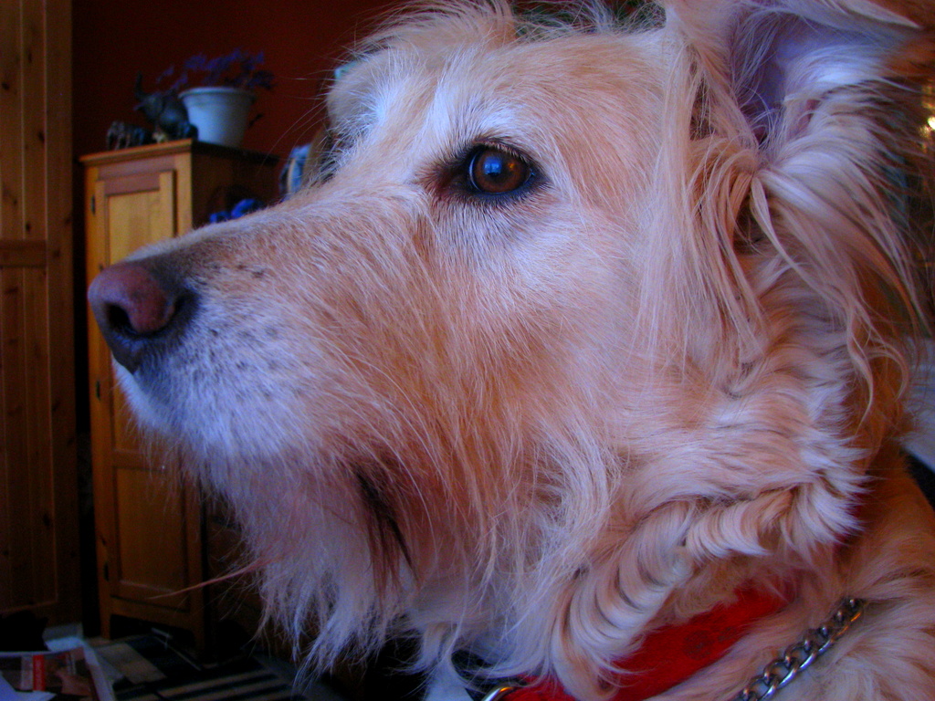 The Sis and I the other night are kvetching over the phone, and the dog conversation of course comes up. So we share our stories du jour. Her with her youthful black, and me with my golden one. They have the same beards, they have slightly curly fur, and its longish…they are somewhat alike…’cept Stella is black, and Irish is white. And Irish was born in 2008, and Stella last year.