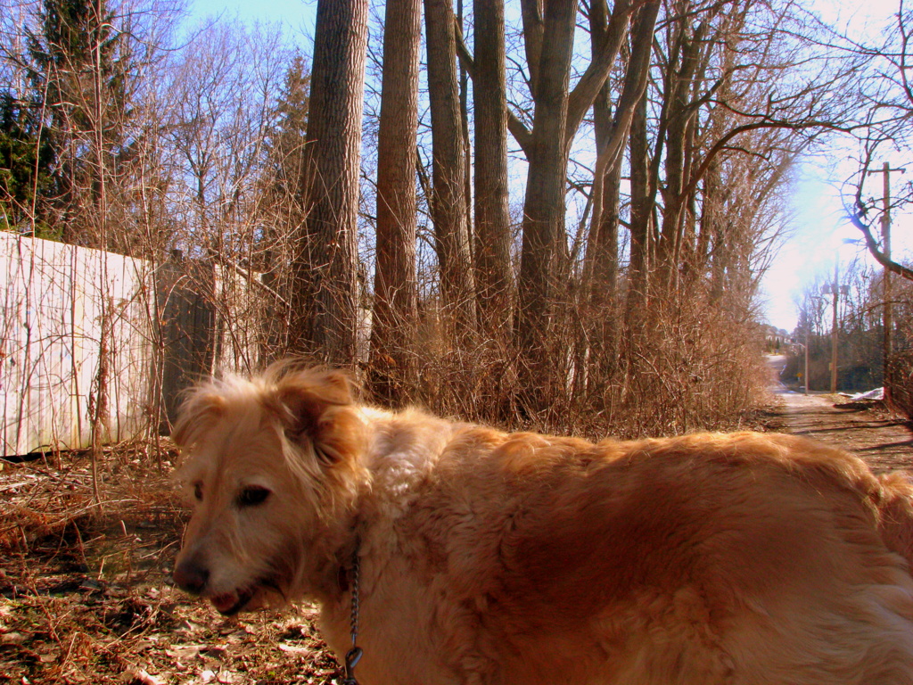 Ol’neighbour’o…well he grabs Irish, and hanging from her neck by her collor, the ol’neighbour’o drags her back to our place (Irish and I lived at my sisters last year) next door.