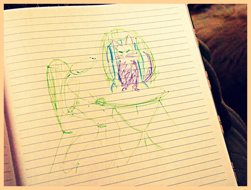 Well, as we’re waltzing past one of the outdoor patios, to my right is the most wonderful scene. Here is this lady and her cat, seated together at this cute little bistro style table for two. She is leaning in towards the feline, as if he’s just told the most jolly intelligent story. The feline, a orangish sleek dandy, is seated upon this zippered kitty-cat backpack THRONE. As we enter his field of vision, his eyes have suddenly become attached to Irish (who is completely oblivious to the laser of death pointed her way).