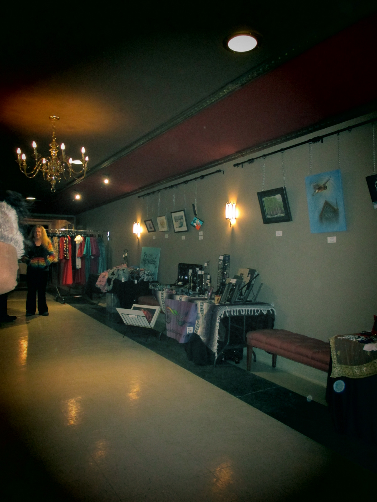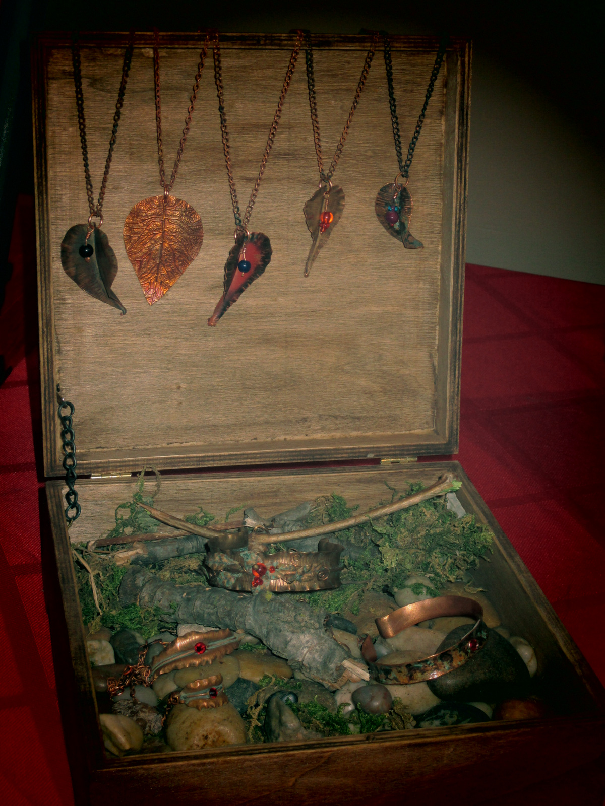 So Mom, who goes to a Burlesque Xmas Performance and spends the evening in the hallway chatting away with one of the vendors? I do, I do. It was a lovely old theatre, and such a fabulous place to see a burlesque show, but as it was this friends FIRST vendor show, it was sort of fun sitting there chatting business. He makes these lovely pieces out of Copper.