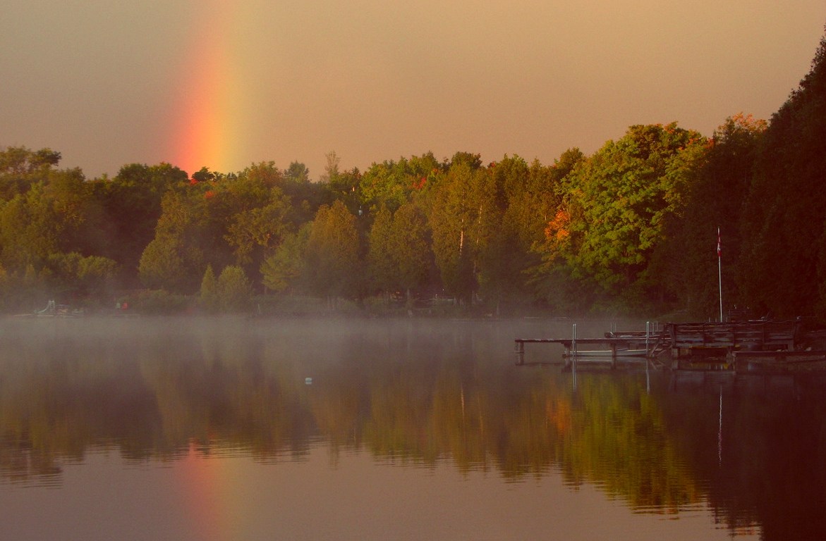 Both were spectacular, and the beautiful bows of colour flashed through the steel-gray sky, high above the Cedars that ring around the lake. Considering all that was to come, for us both, the diverging path that lay ahead, those rainbows spoke to me. They whispered forgiveness, love, and they symbolized for me that it would all be ok, in the end.