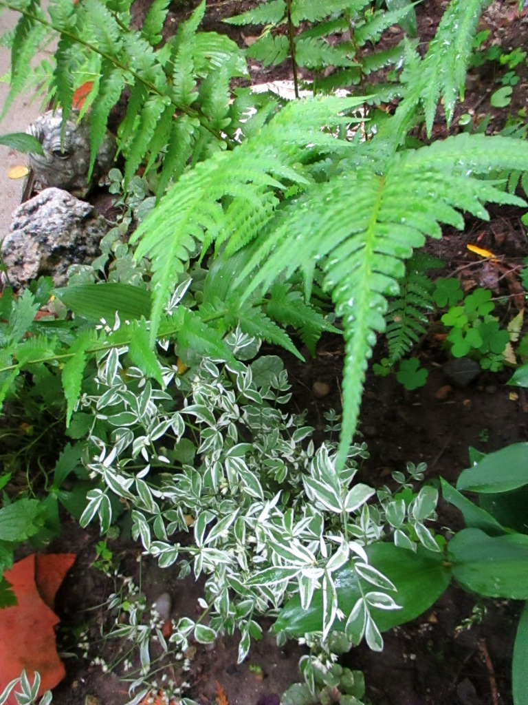 I love my woodland garden best on rainy days. Each drop is filtered through the Black Walnut above, and I walk along the pathway, admiring each leaf and flower. The play of light as the raindrops settle, illuminating the texture, nature & colour of each. Subtle shifts of light highlight the contrast of leaf, and I imagine the raindrops filtering through the earth towards the roots, and that feeds me as much as them.