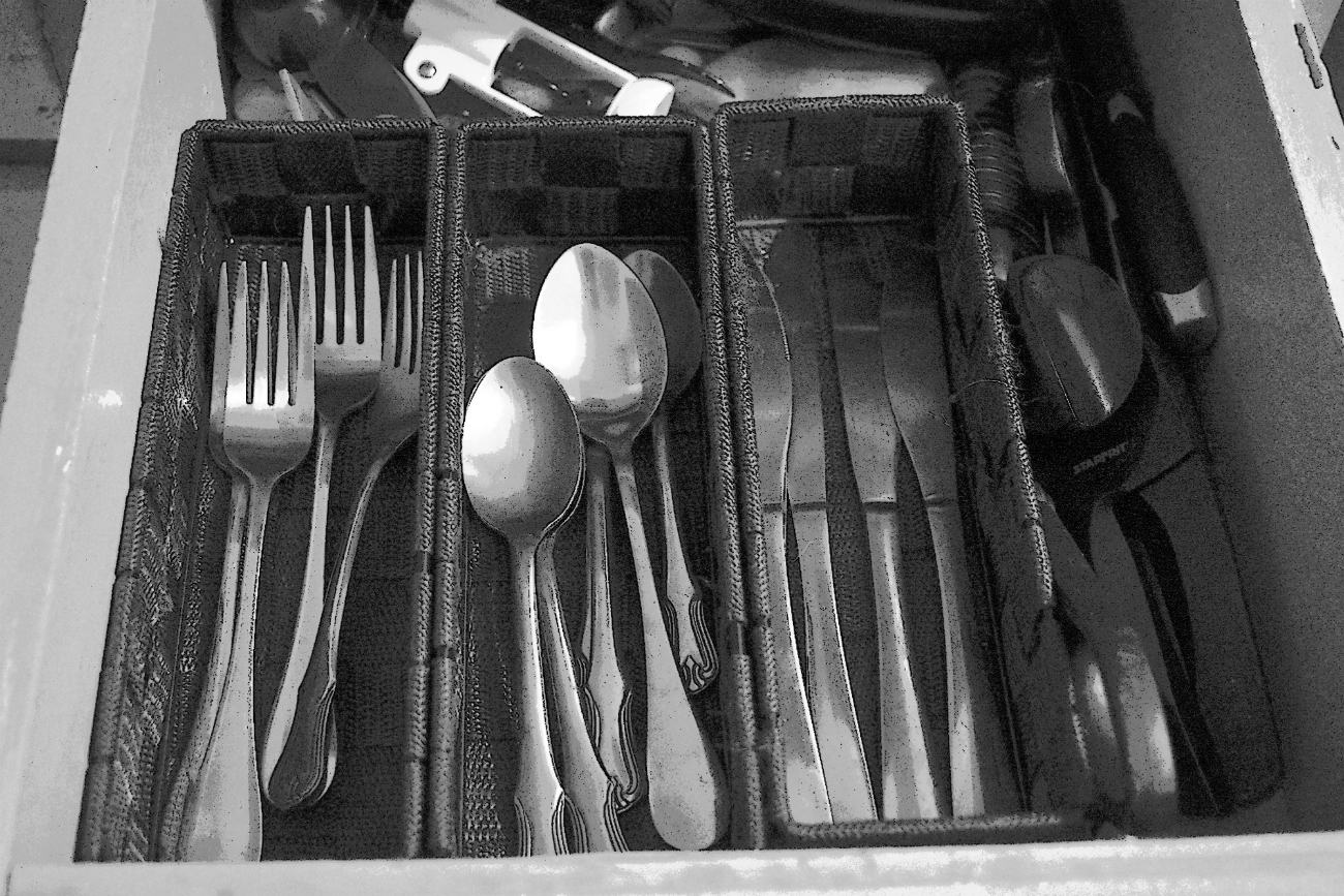 Even staring down into the utensil drawer the other day while putting the clean dishes away, thinking about how I should have known that Blue-Eyed-Man was trouble when I saw the condition of his haphazard utensil drawer, even then I couldn’t get the words to play ball. Even when I realized that the only time I actually think of him anymore is when I’m putting the silverware away. Not one paragraph could I tease out. None. Nada. Till now.