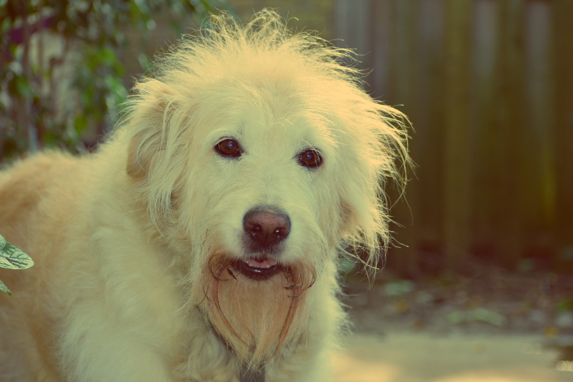 Gave her a long brush, backwards and forwards, cooing pretty girl, such a pretty girl, so she’ll cooperate with me. Her fluffiness floats away, with soft golden bits in the air and everywhere, with a clump of it underneath the tree that looks as though I murdered a Shih tzu.