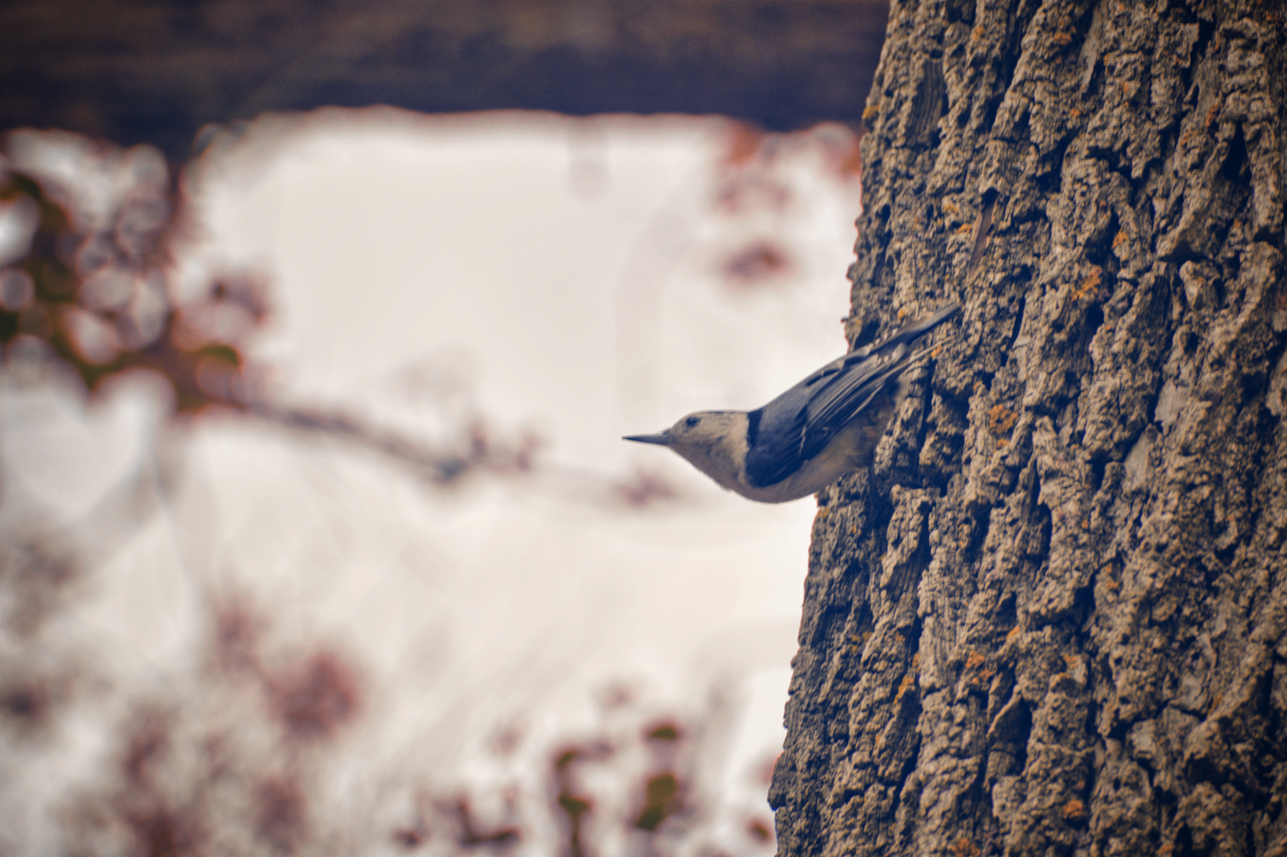 So instead now I sit in my little nook and gaze at the leafless Black Walnut outside my window, today against at a dull white sky.