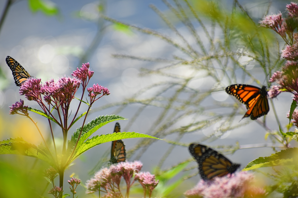 Well, and I used my instincts, and turning my eyes towards the river I saw Monarch Butterflies were lapping up the nectar from the Swamp Milkweed that lines the path, and so I had to stop. Putting Rose off to the side, I snapped away for 20 minutes or more, returning to the same spot on the way back.