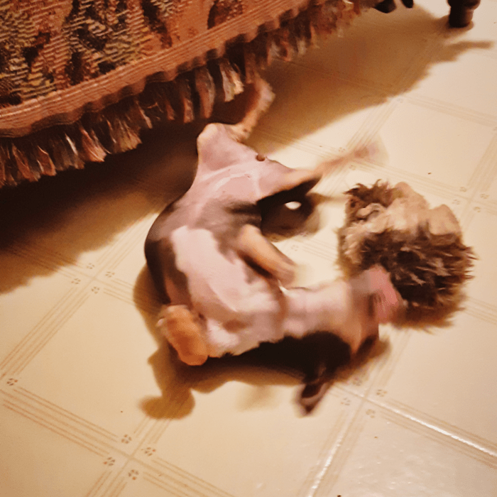 So, I’m continuing with where Irish and her parents lessons left off, to not bite, well, er, not bite ME. So I watched this vid on YouTube, this Simpawtico, and his advice was to make sure you say OUCH, or maybe NO, and not take your hand, foot, away. Well, try not to, where and or when possible, unless the wee daemon draws blood, which she has. But, he said that it is better to teach them about their bite strength, and that we humans don’t care for that sort of rough play, and to let them correct themselves. And you know, it is working, she’s getting the drift that I don’t like to be ripped and shredded to mincemeat. Winning!
