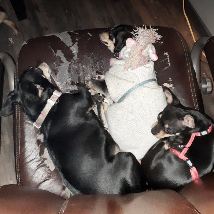 So the other night I took Pika back to visit her mom and dad, and her sister from another litter, and they hung out and many growls and howls of fun, and bum sniffs, and sounds of someone being strangled, and I recognized that sound, the family love teaching wee Pika stuff I just can not, all the doggo manners and ways of getting along, making peace, making friends, learning how much shite your sister will put up with before she hauls off and bashes you in the gut.