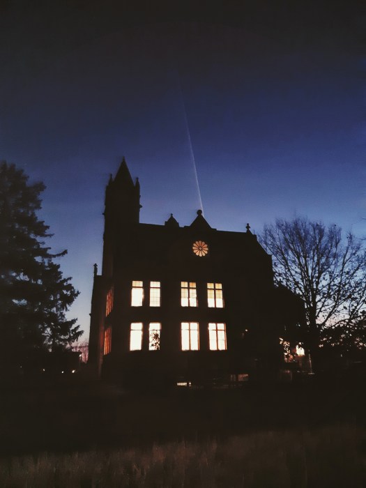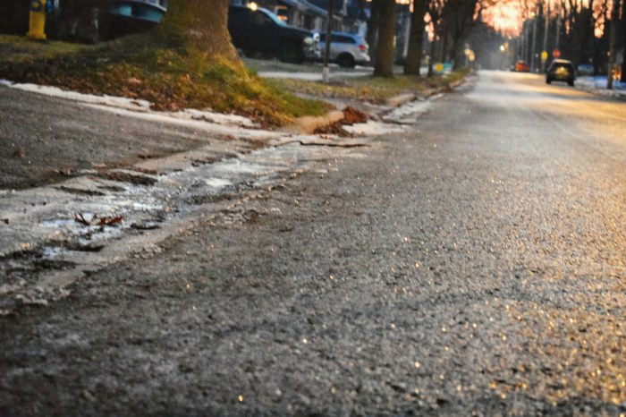 Left at a quarter after 7am, and the quarter moon was hanging in the sky in the half light, to the east a jet trail crossed the sky. That early twilight sky, the roads and sidewalks flush with sparkles from the cold crisp air, set light dancing everywhere.