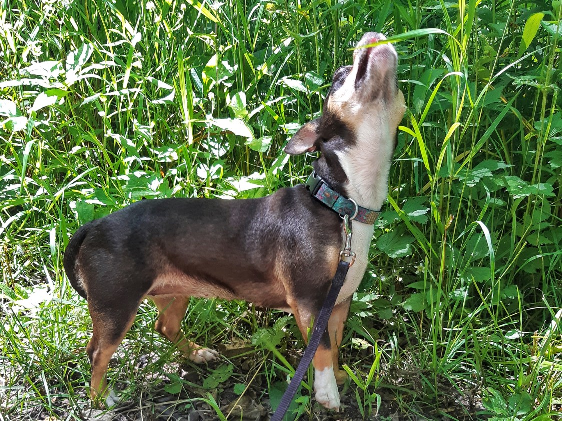 Joy is found in doggies reaching for the one sweet blade of grass, or the sky on a beautiful summer day, wildflowers on a pathway.