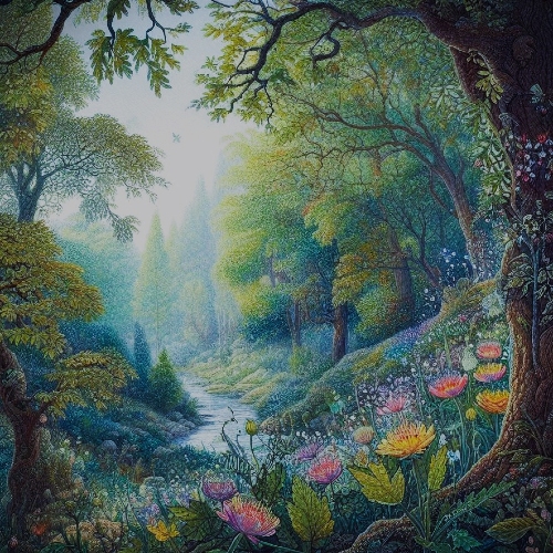 As Nathan walked deeper into the grove, the very air seemed to come alive with enchantment. The trees, their branches adorned with leaves of the most vibrant greens, whispered ancient secrets. The flowers, each one a unique masterpiece, sang a song of hope, their petals shifting and swirling like an orchestra in perfect harmony.